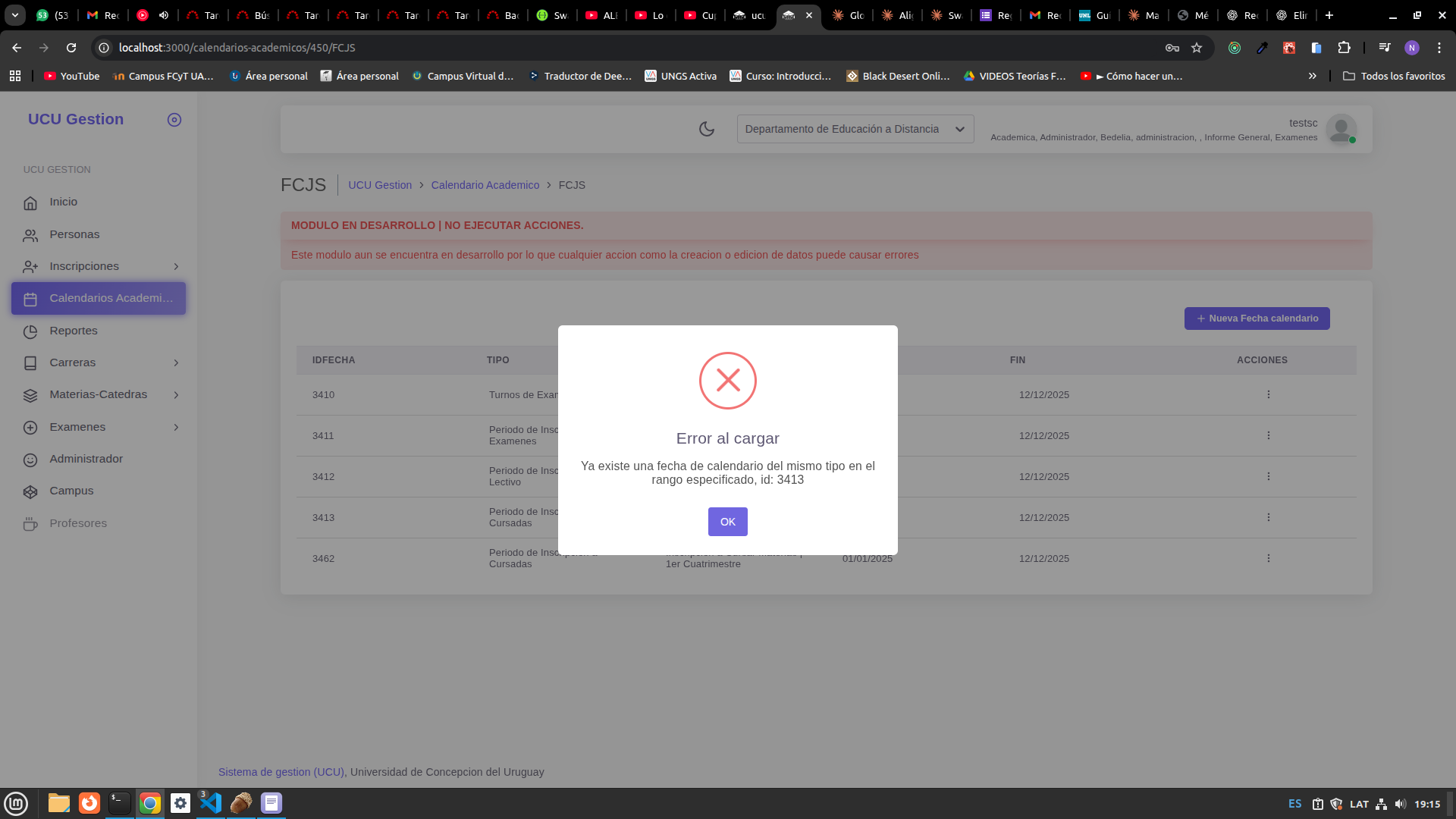 - Agregar control de fechas superpuestas de turnos y periodos de examenes. Se debe dejar al menos 2 dias de anticipacion entre el periodo y el turno